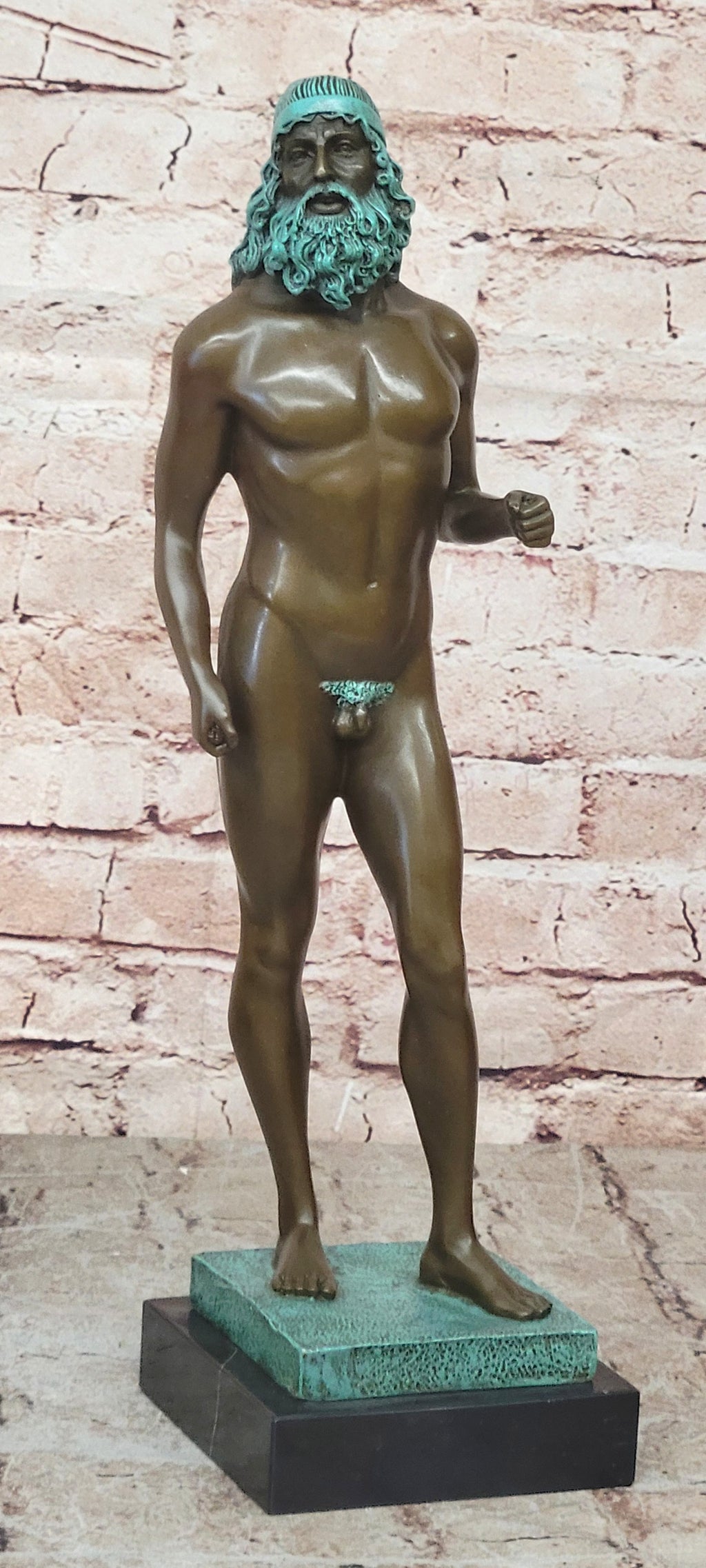 This magnificent artwork stands as a testament to the rich cultural heritage of ancient Greece. As the god of the sea, Poseidon symbolizes strength, authority, and the untamed power of nature. The sculpture's commanding presence and dynamic pose capture the essence of this legendary figure, making it a striking addition to any art collection or home decor.